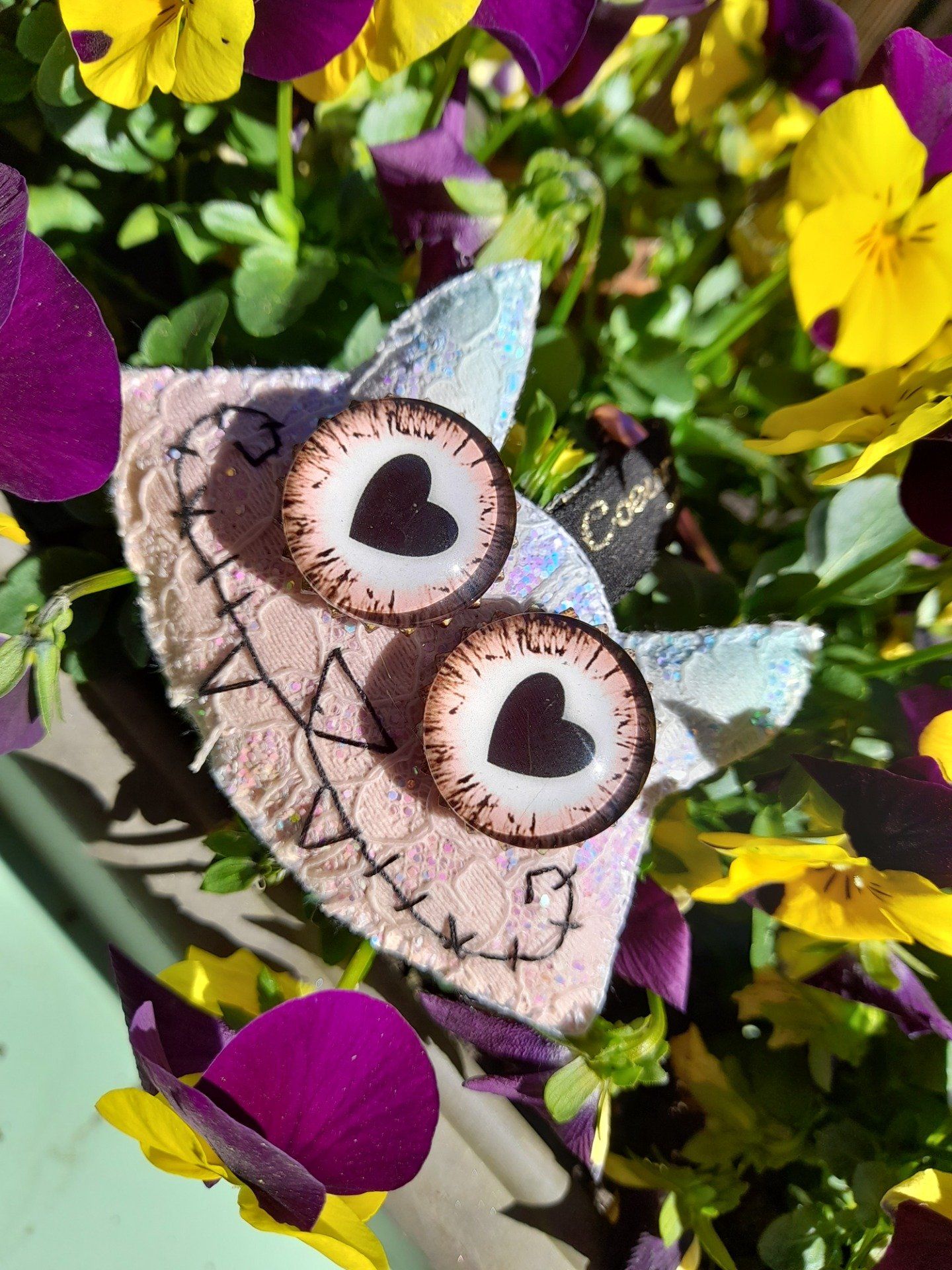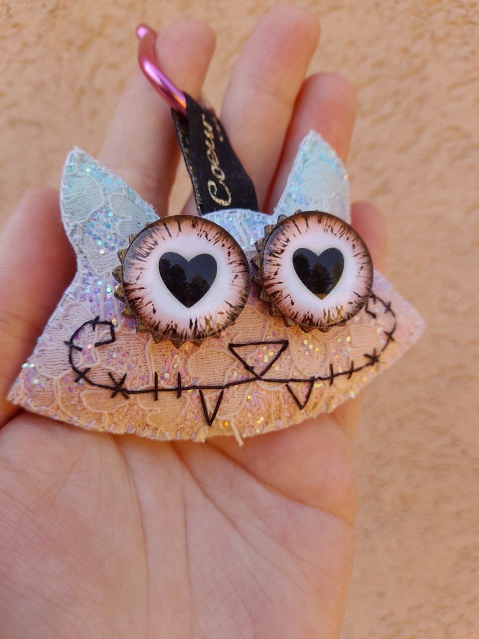 "Chat-monstre" marron tigré porte clef déco