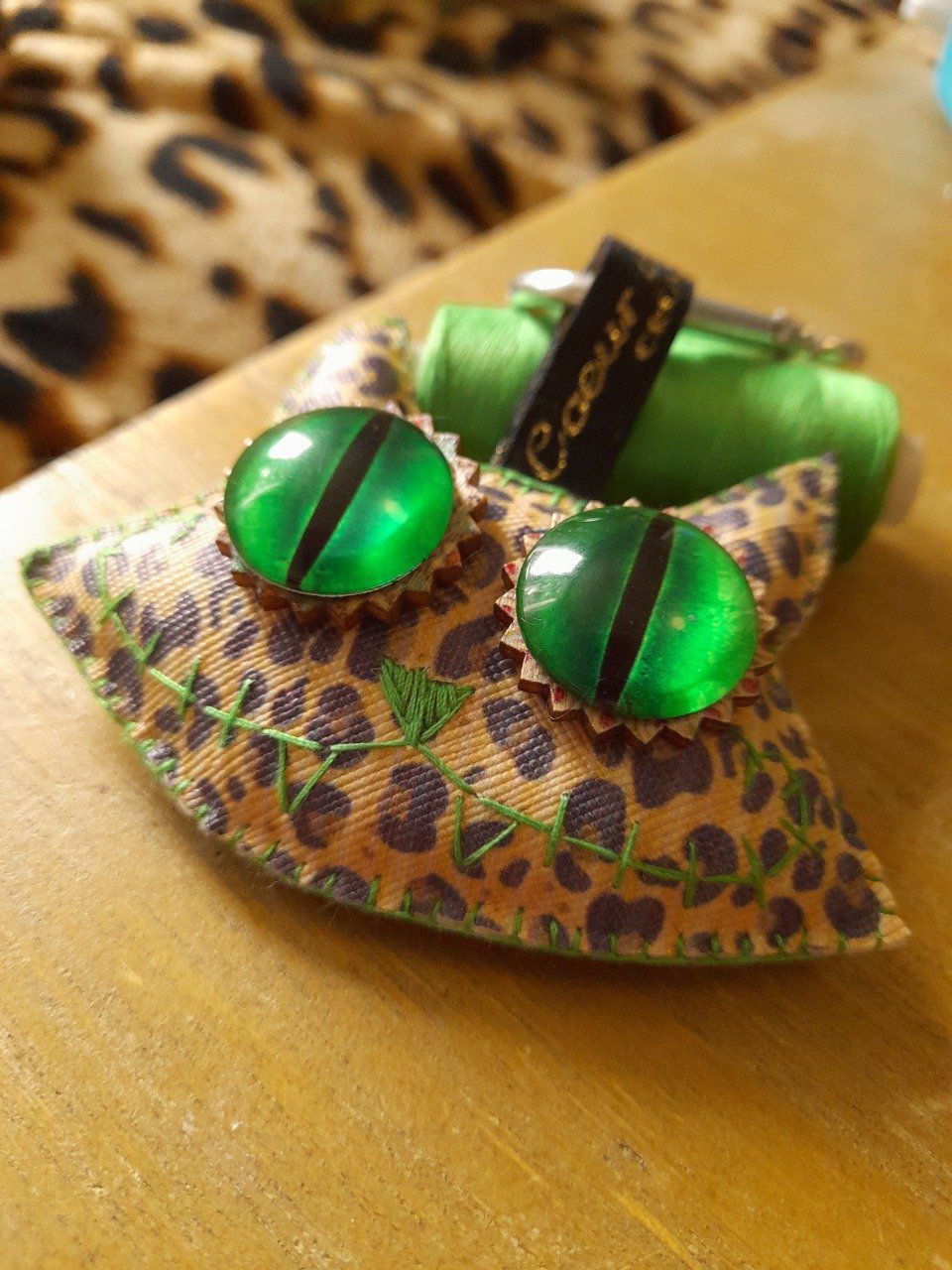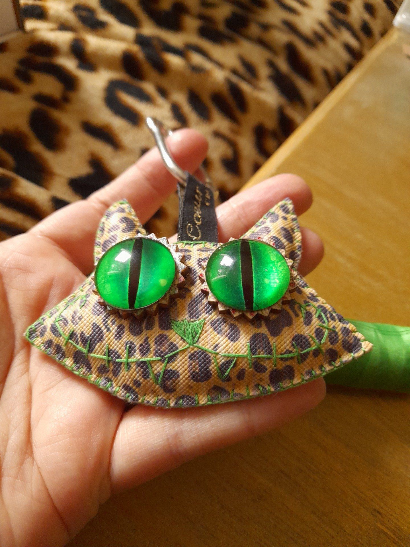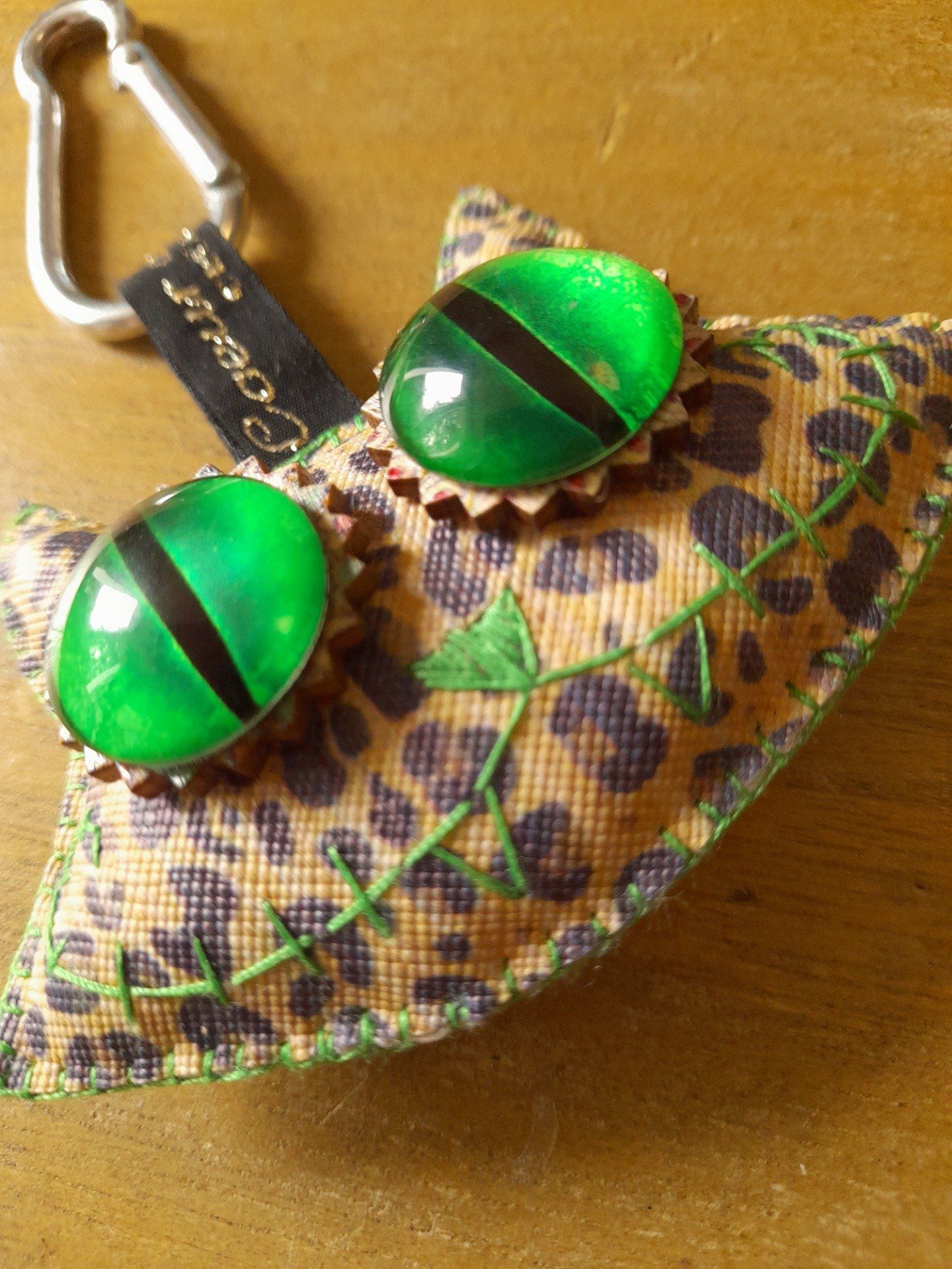 "Chat-monstre" marron tigré porte clef déco