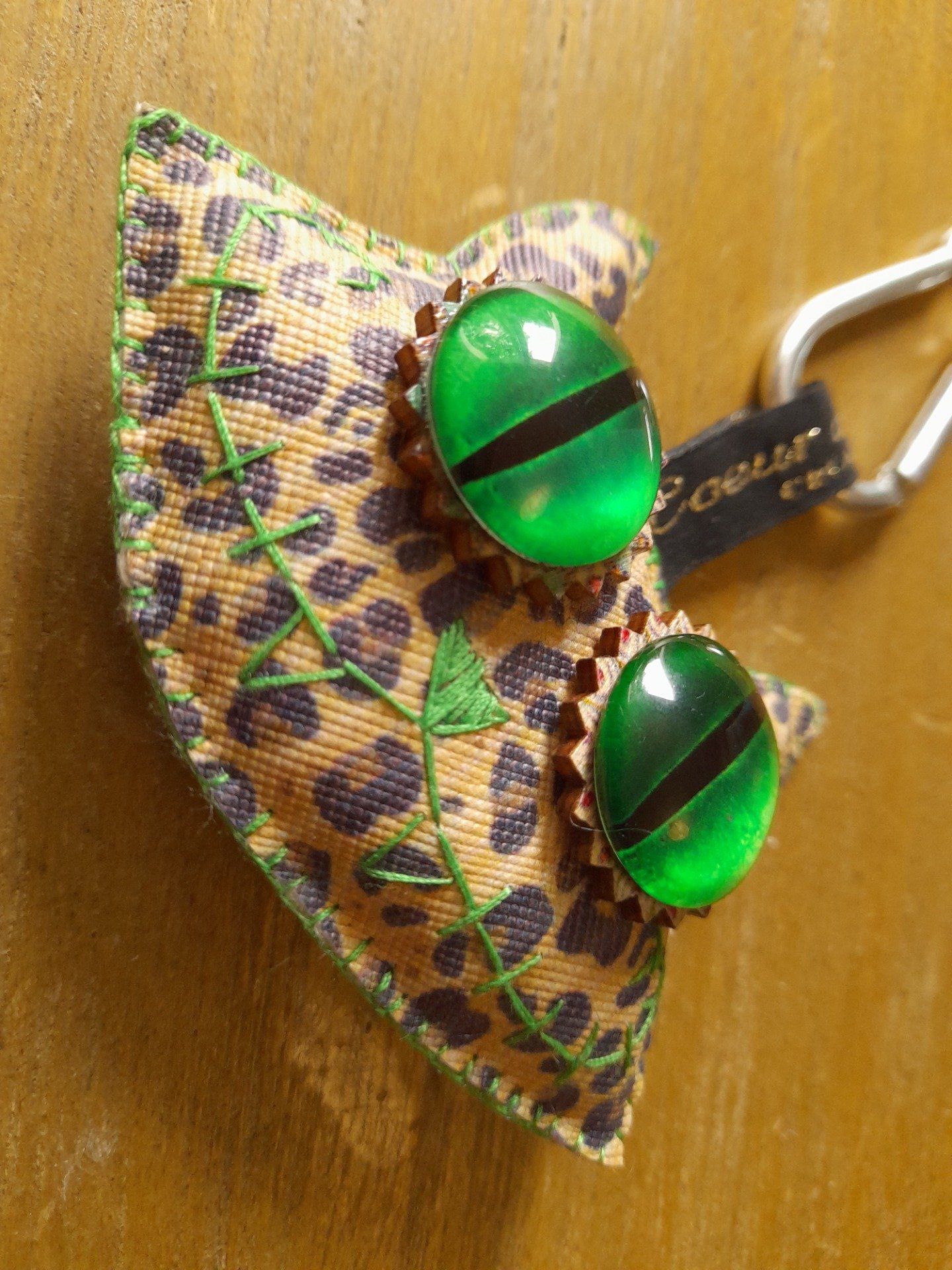 Porte-clef en simili cuir cousu à la main.